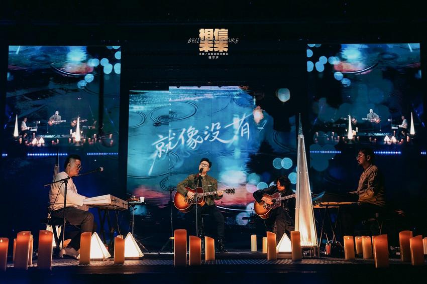 当《我就这样爱着你》《青春》《海拉尔的风》《你是我心爱的姑娘》等慢歌前奏响起,舞台的喧嚣随之褪去。汪峰与键盘黄毅、钢琴秦四风、箱琴王大夫三位乐手围坐成一圈,像是多年老友在音乐客厅里的即兴合奏。地面上摆放的灯火将温暖投射到全场每一位观众的目光里、心里。