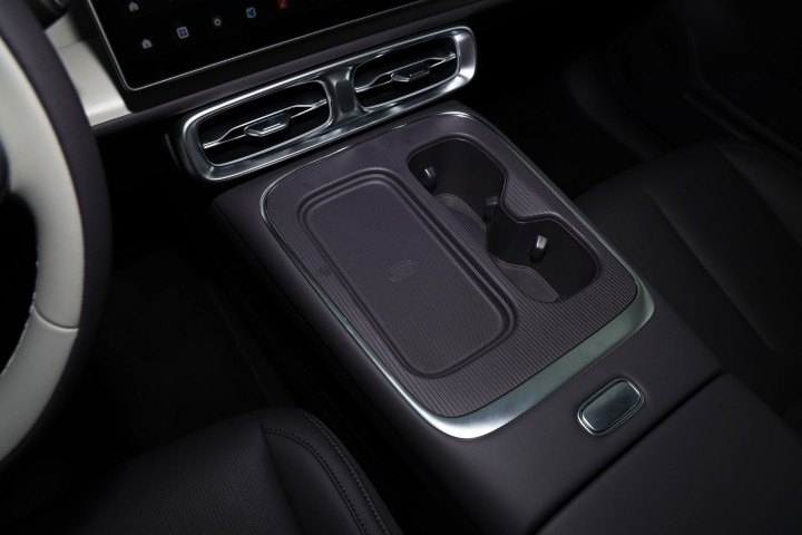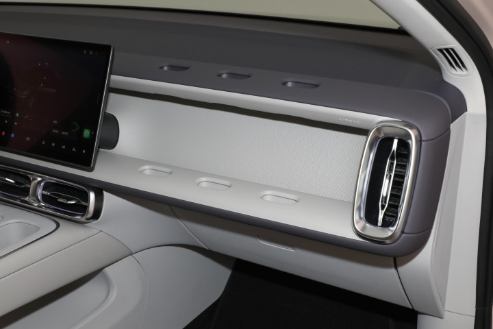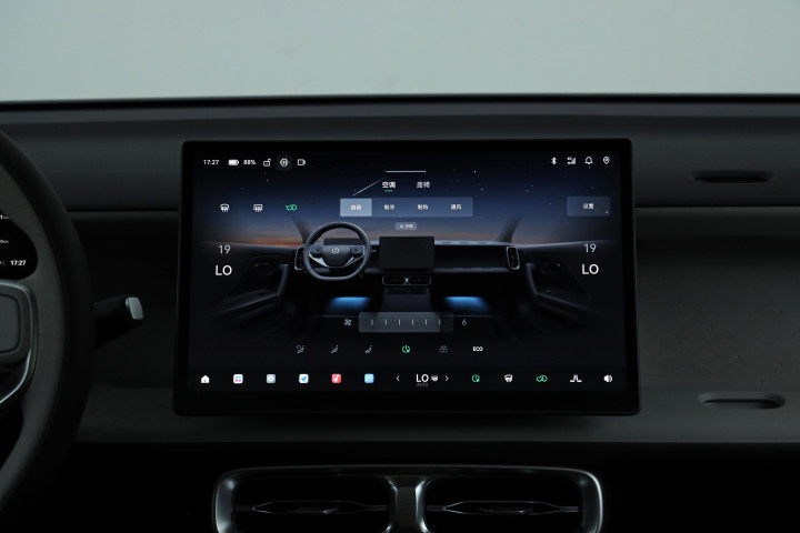 矗立在正中央的那块 14.6英寸的2.5K超清中控屏,分辨率极高,色彩鲜艳,滑动起来丝般顺滑;它和8.8英寸的液晶仪表盘一起,构成了整个座舱的信息中心。屏幕下方几乎没有物理按键,所有的功能都集成在了车机系统里,极简风格贯彻到底。