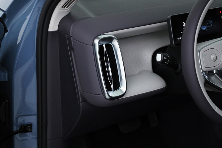在零跑B01这个价位,你能摸到的地方几乎都是软性材质包裹。官方说 软包覆盖率高达88%,我亲自用手摸了一圈,从门板到中控台再到中央扶手,触感都非常细腻,完全没有廉价塑料感;特别是那个“廊桥式”中央扶手,皮革包裹面积很大,胳膊搭上去很舒服。空调出风口、门把手、方向盘上的镀铬饰条,据说供应商和奔驰是同一家,光泽度和质感确实不输豪华品牌。座椅的打孔纹理也很有意思,模拟了“竹节”的形态,寓意“节节高”,这种小细节真的很讨喜。